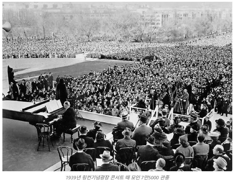 1939년에 그녀가 국회 강당에서 공연을 하려고 했지만 흑인이라는 이유 하나로 거절당했습니다.